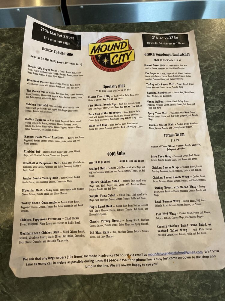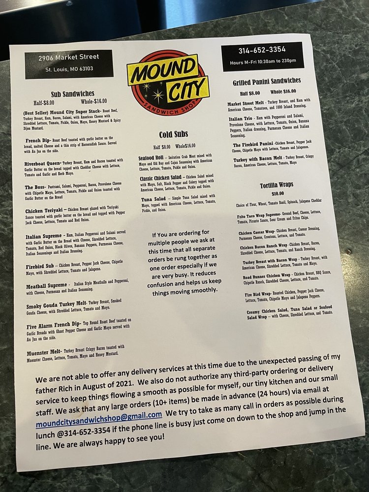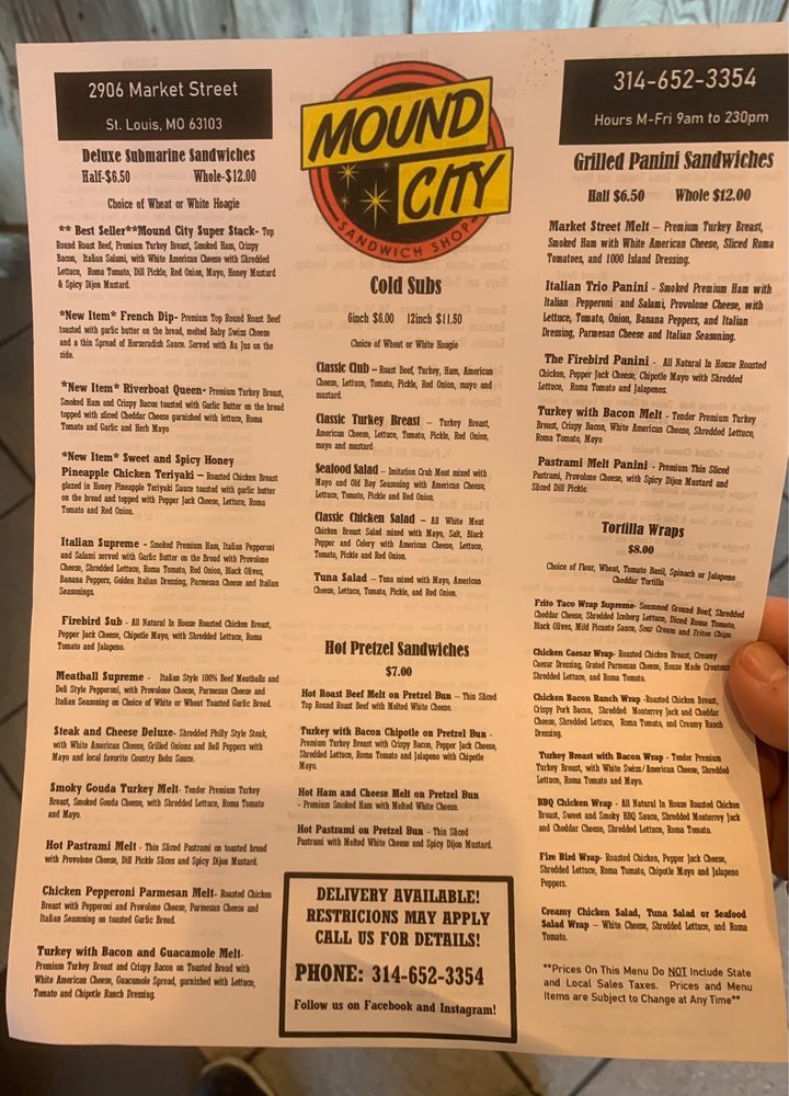Located at 2906 Market St in Saint Louis, MO, Mound City Sandwich Shop is a must-visit for burger, taco, and sandwich enthusiasts. This eatery offers a wide range of options with the convenience of delivery, takeout, and reservations. Whether you're dining solo or with a group, Mound City Sandwich Shop caters to everyone and is kid-friendly. The outdoor seating, Wi-Fi, drive-thru, and TV entertainment make dining here a pleasant experience.
